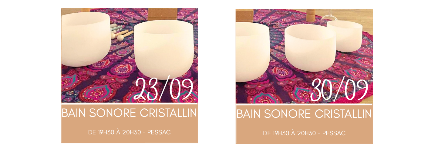 Enfin, pour toutes celles qui sont en région Bordelaise et qui souhaite vivre l’expérience vibrante de l’alliance des pierres et des bols de cristal, retrouvez-moi pour un bain sonore cristallin !